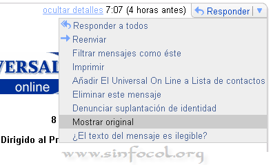 Si queremos profundizar más, podemos decirle a nuestro servidor de correos que nos presente una versión original del mensaje (Con cabeceras que envia el mailer)